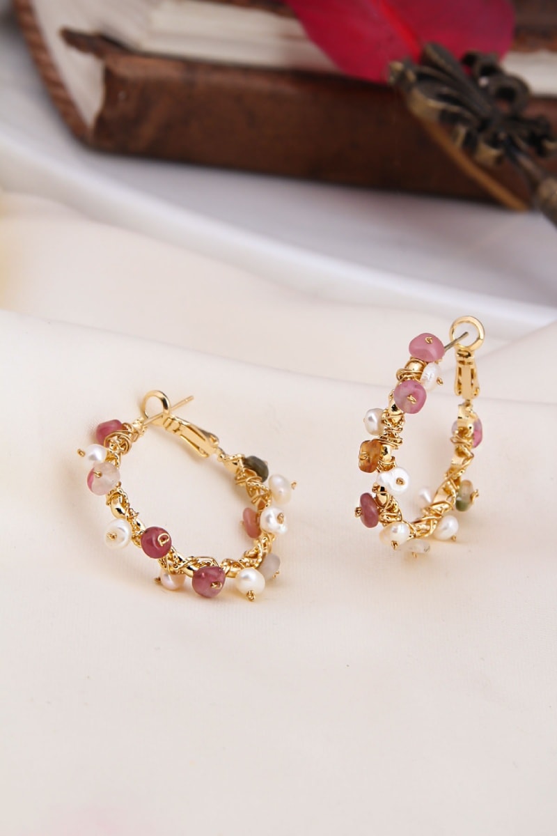Creolen - Doublé Geelgoud, Agaten en Cultivéparel