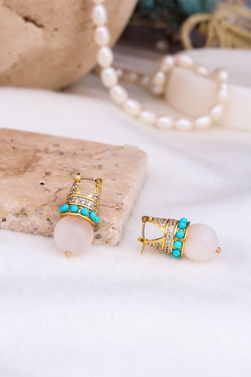 Oorbellen - Rozenkwarts, Zirkonia’s en Turkooizen