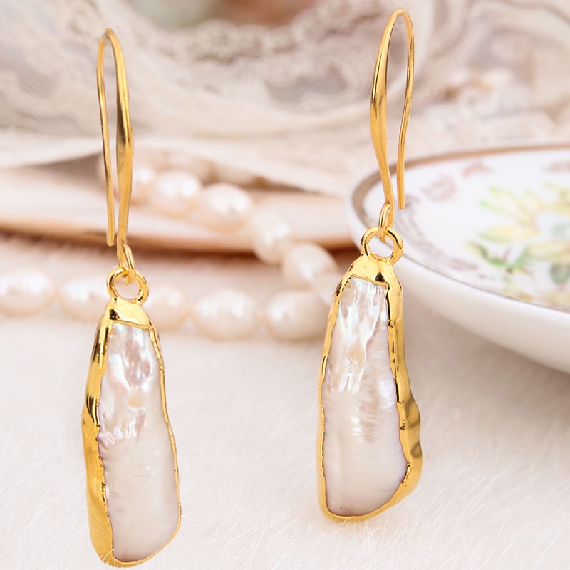 Val voor deze oorbellen van messing doublé geelgoud, verfraaid met stralende witte parels. Elegant en licht, ze zullen een vleugje glamour en verfijning aan al jouw outfits brengen!