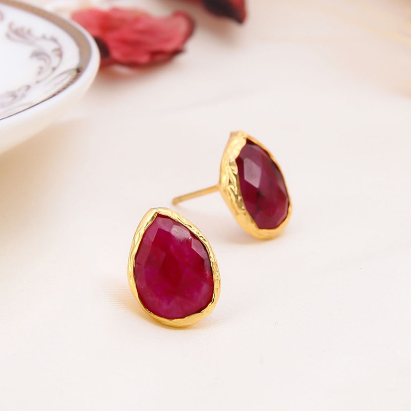 Oorbellen - Messing Doublé Goud & Geverfde Robijnen
