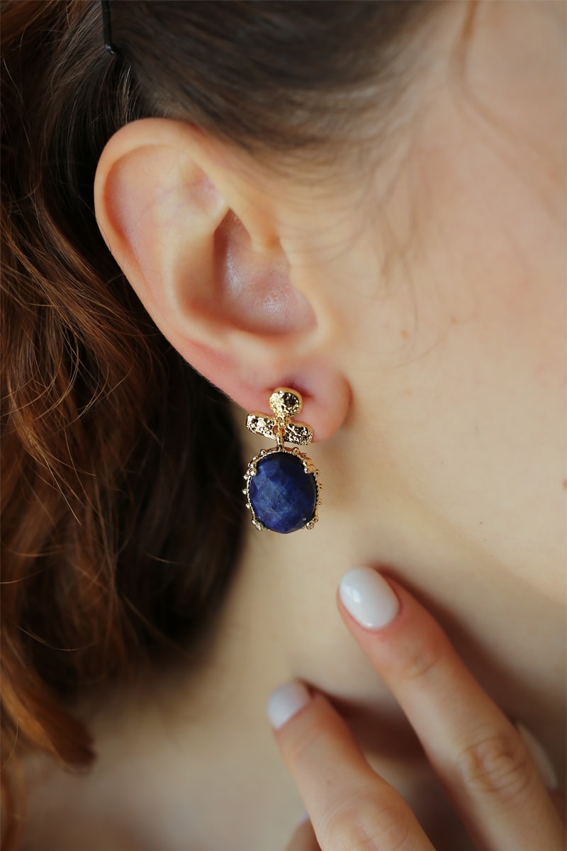 Hangende oorbellen ingelegd met saffier.