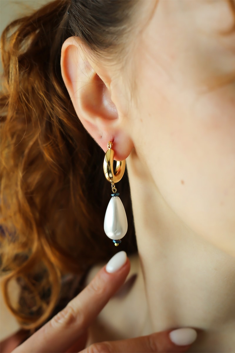 Hangende creolen ingelegd met Mallorcaparels.