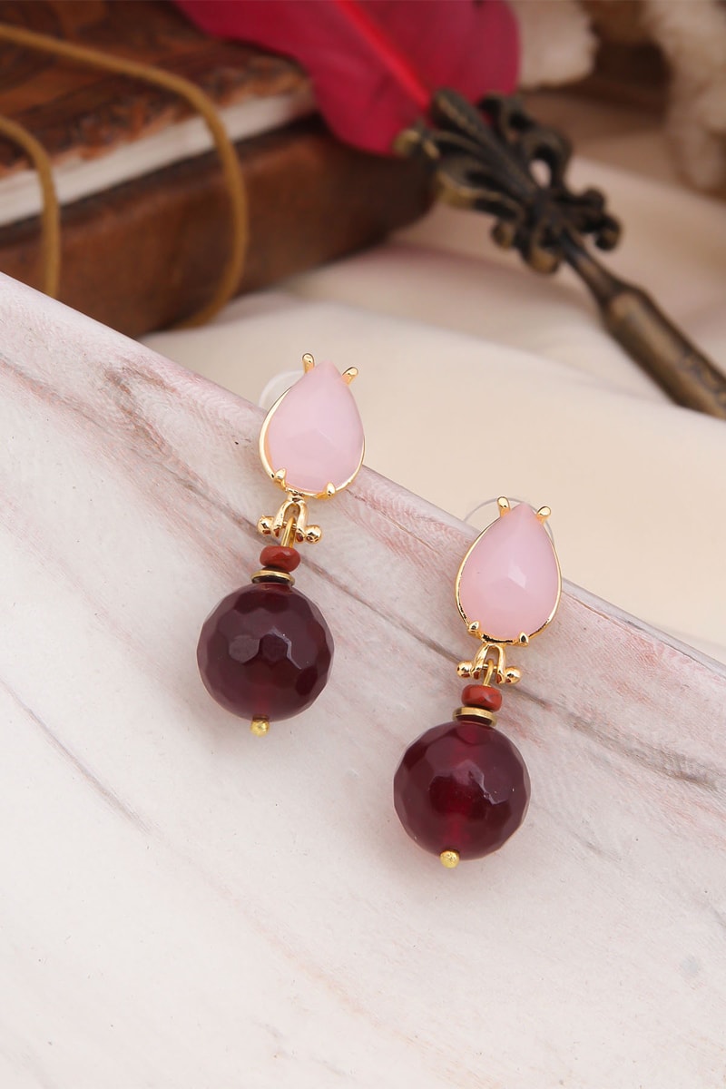 Hangende oorbellen ingelegd met rozenkwarts roze en granaat.
