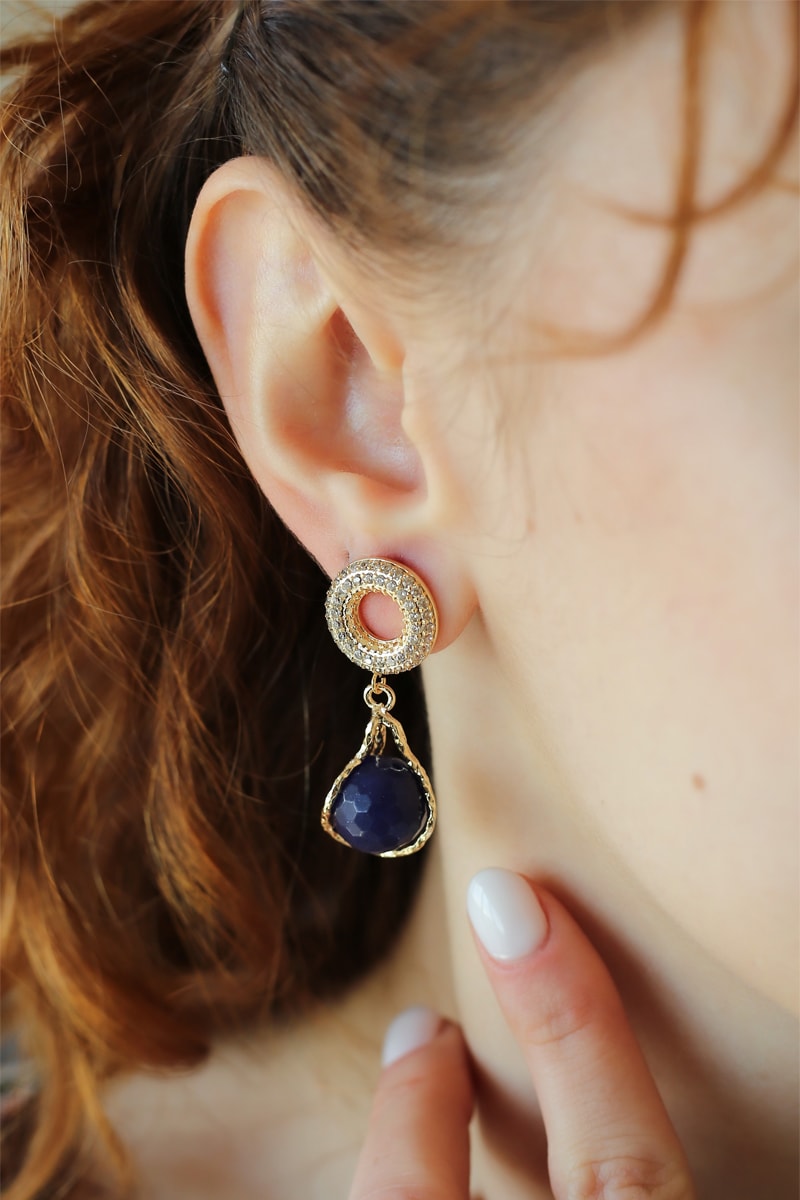Hangende oorbellen ingelegd met zirkonia’s en 1 agaat.
