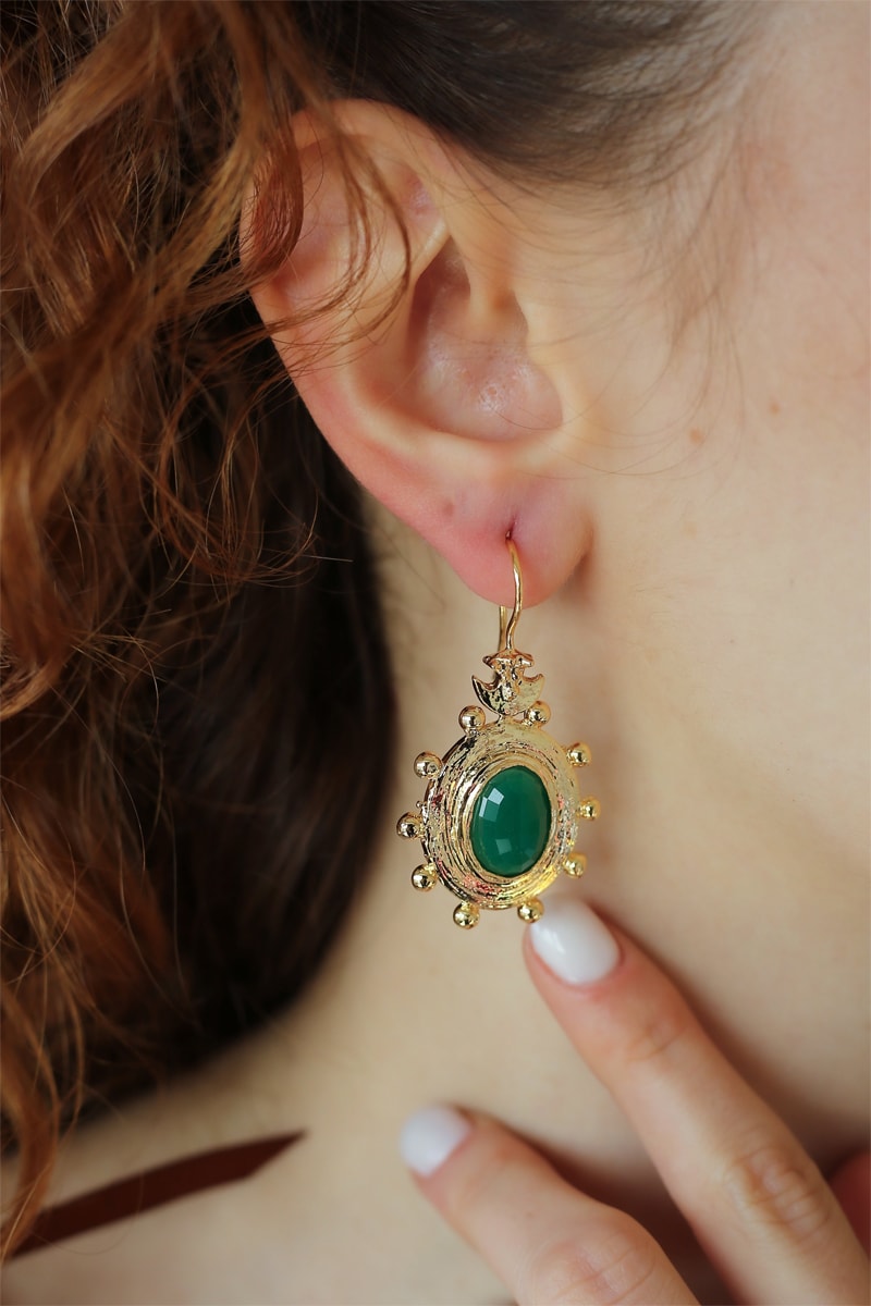 Hangende oorbellen ingelegd met 1 kattenoog.