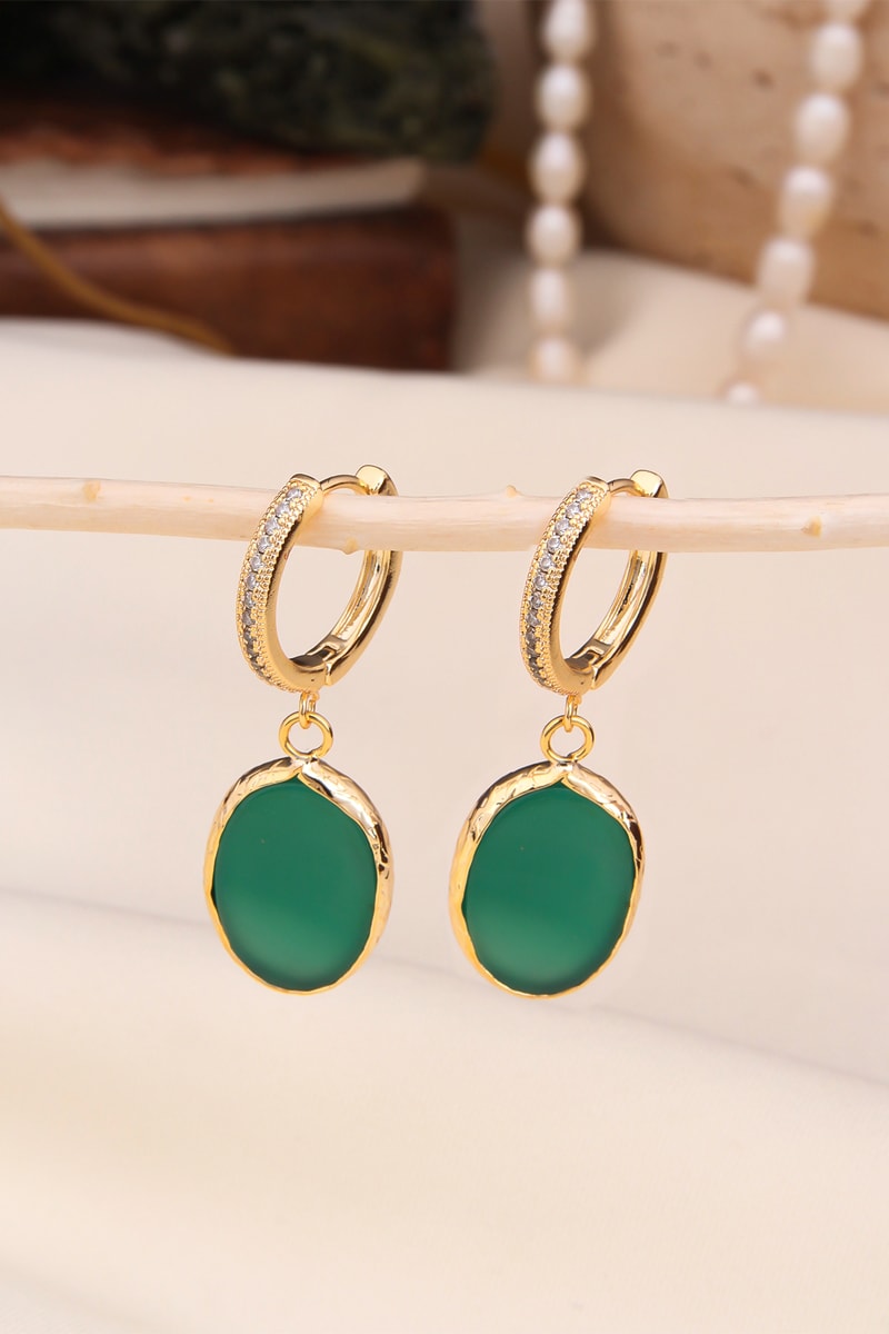 Hangende oorbellen ingelegd met zirkonia’s en 1 agaat.