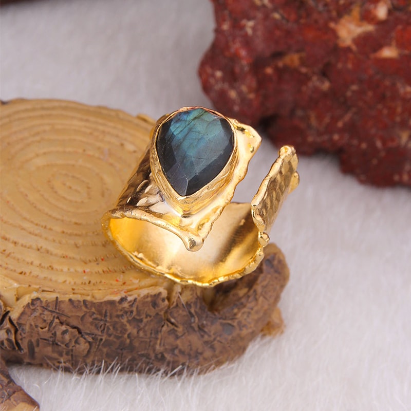 Verstelbare Ring - Messing Doublé Goud & Labradoriet