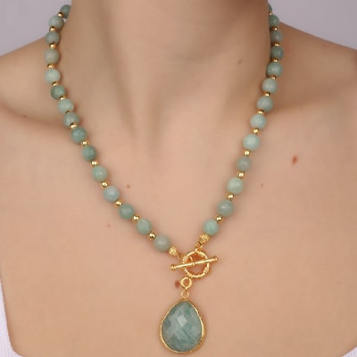 Val voor deze delicate ketting van messing doublé goud, verrijkt met prachtige amazoniet. Elegant en licht, het zal een verfijnde toets geven aan al je outfits, terwijl het hypoallergeen en comfortabel is om dagelijks te dragen.