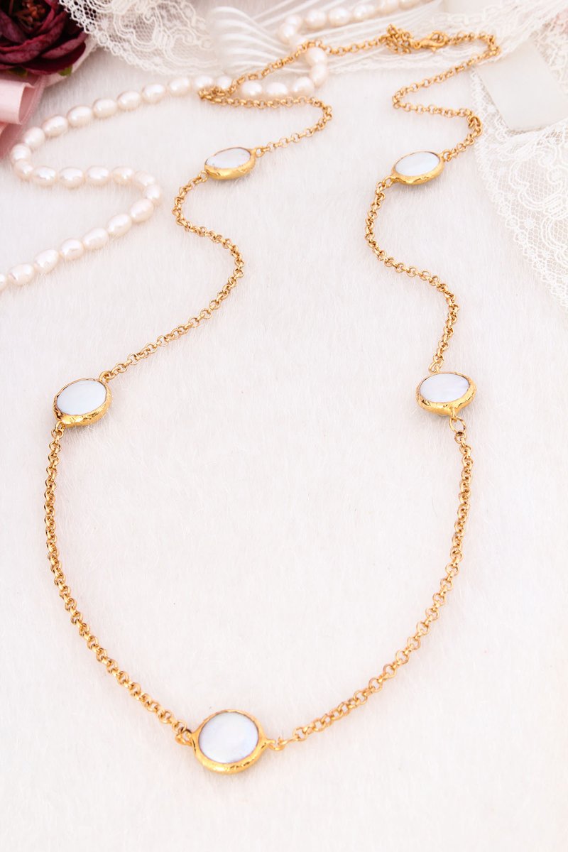 Goudvergulde ketting ingelegd met 5 cultivéparels.