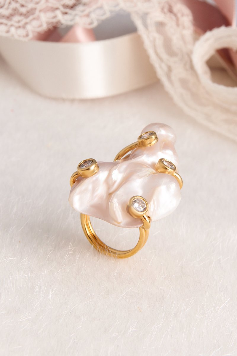 Ring - Doublé Geelgoud, Cultivéparel en Zirkonen