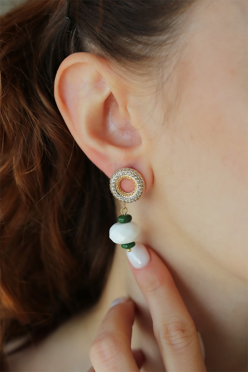 Hangende oorbellen ingelegd met zirkonia’s en maansteen.