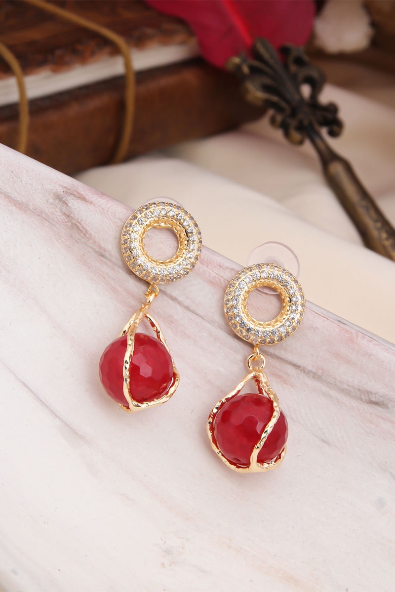 Hangende oorbellen ingelegd met zirkonia en 1 agaat.