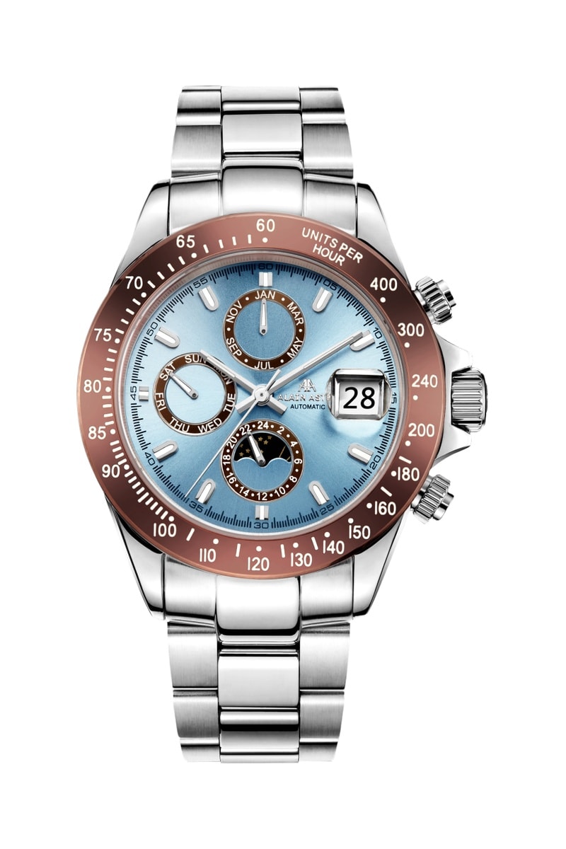 Stalen Automatische Horloge - Tachymeter - Zilver- en Koperkleurig