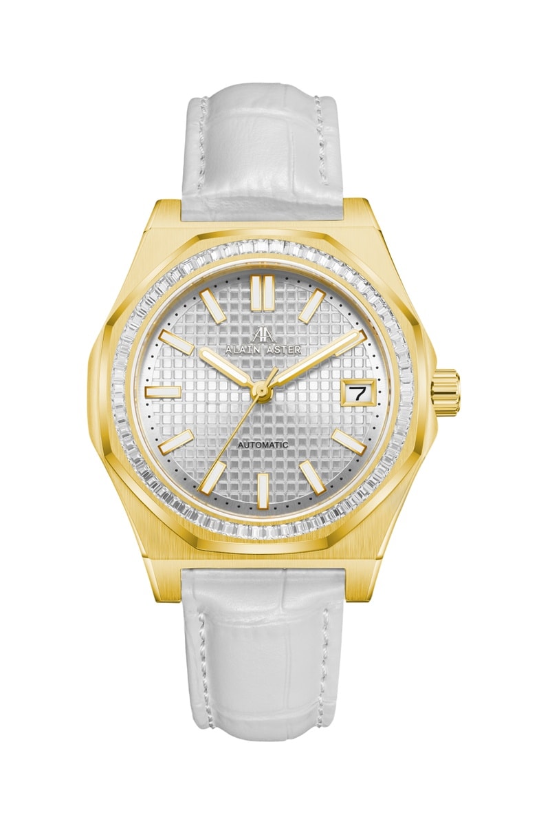 Leren Automatische Horloge met Zirkonia’s