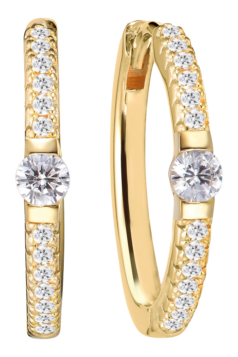 Creolen van zilver doublé geelgoud ingelegd met zirkonia’s.
