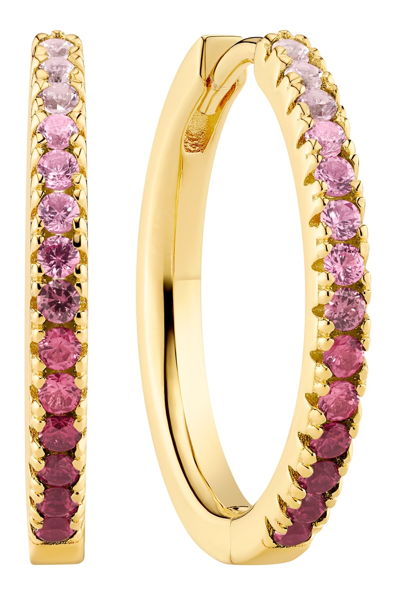 Creolen van zilver doublé geelgoud ingelegd met 14 zirkonia’s.