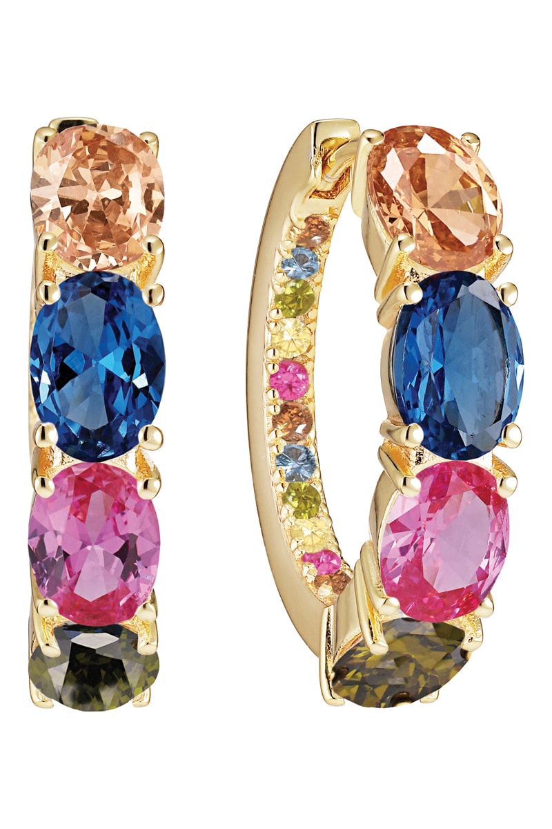 Creolen van zilver doublé geelgoud ingelegd met zirkonia’s.