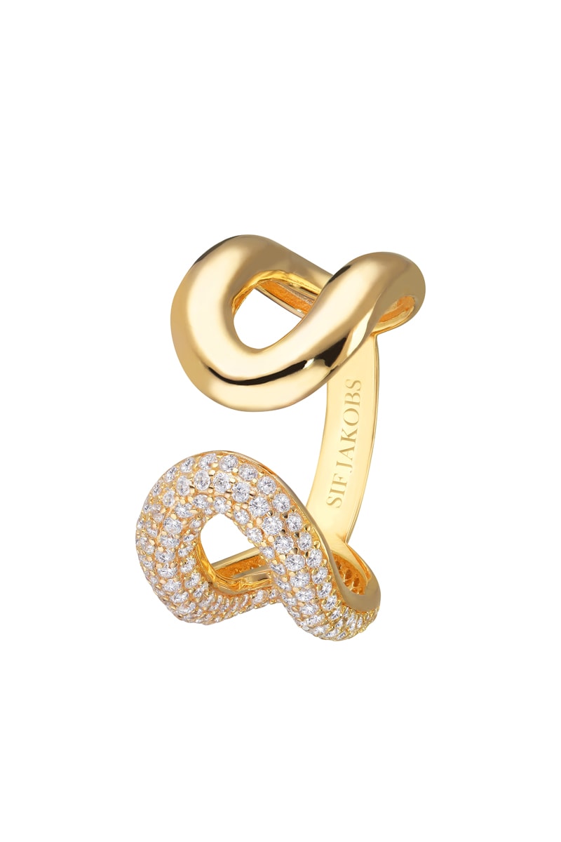Ring van zilver doublé geelgoud ingelegd met zirkonia’s.