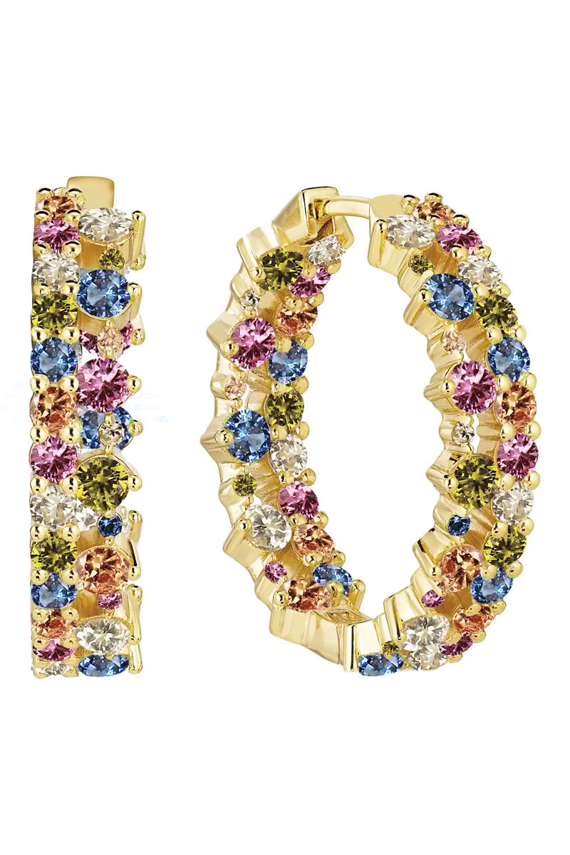 Creolen van zilver doublé geelgoud ingelegd met zirkonia’s.