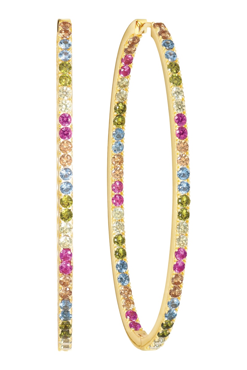 Creolen van zilver doublé geelgoud ingelegd met zirkonia’s.