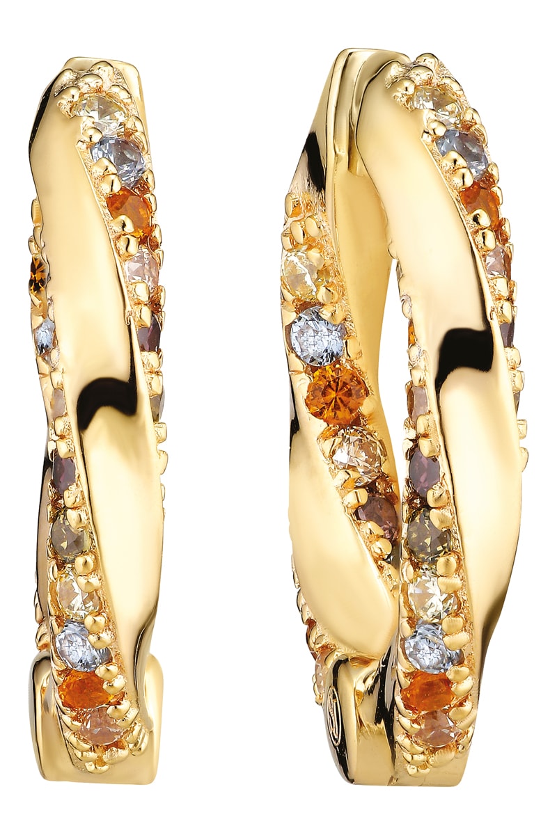 Creolen van zilver doublé geelgoud ingelegd met zirkonia’s.