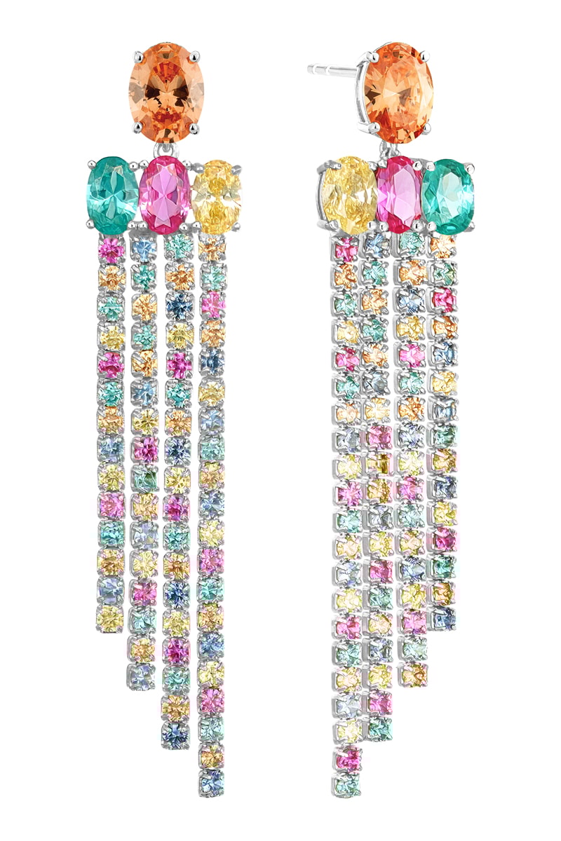 Hangende oorbellen van zilver ingelegd met zirkonia's.